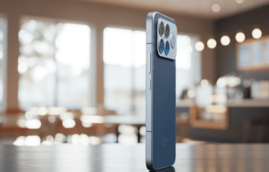 厚さ7.98 mm、重量220 g。 平面ガラス+金属フレーム+IP68。 背面は「光ファイバー強化樹脂」だが、デニムブルーは本革級の触感。 指紋ゼロ、傷も付きにくい。 カラー: ・Denim Blue(ヴィーガンレザー) ・Arctic White ・Graphite Gray
