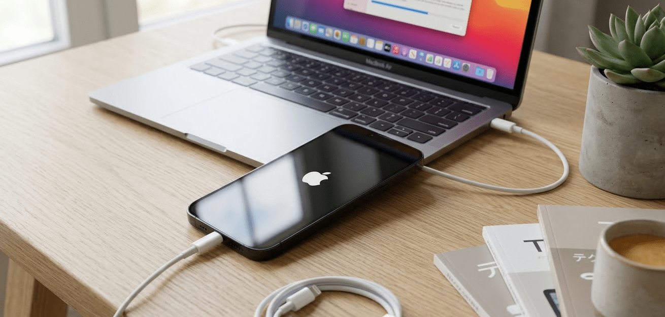 - iPhoneをパソコンに接続
